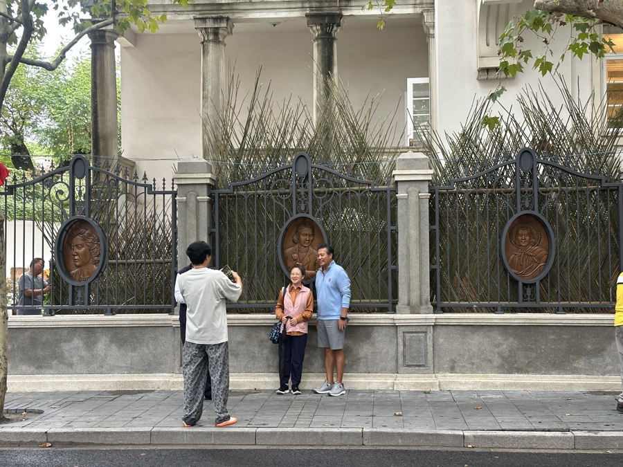 “这是孙道临,《渡江侦察记》我们当年都看过。这肯定是王丹凤,《护士日记》这个造型可太经典了。”阳光熠熠,武康路395号外,一对母女正对着刚刚完成升级改造的上影演员剧团围墙一一辨认浮雕上的七位“新中国二十二大明星”。昨天,随着最后一块篱笆上墙,上影演员剧团围墙微升级改造正式完成,湖南路街道电影街区也即将在10月下旬正式揭幕。