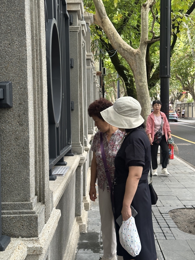 路过的市民、游客有的逐字逐句地读着他们的生平,有的在每一个铜像前打卡合影,有的则现场拿出手机翻查起这些老演员的资料。