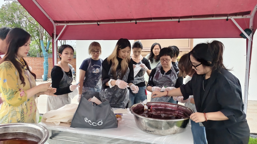 “植染秋华:植物丝巾染制工作坊”现场。