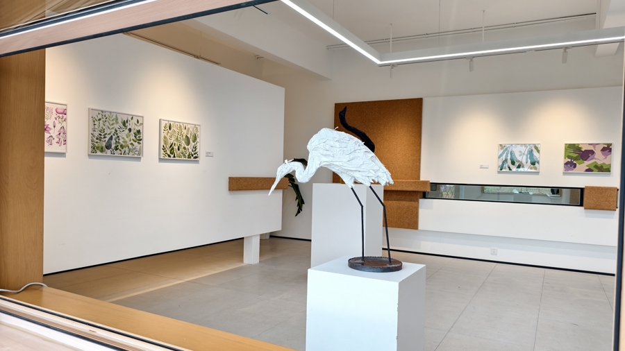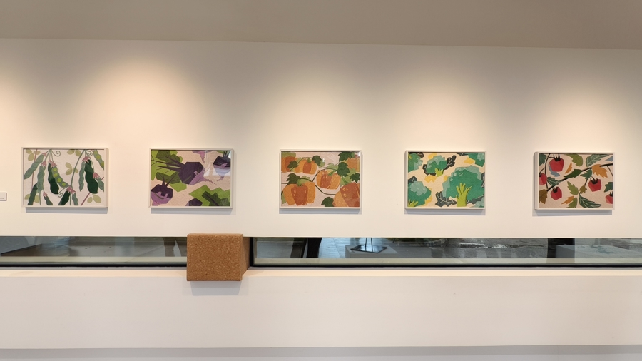 “农家乐:菜园美术馆开馆展”位于沈杨村901欢乐农场盒马配资,展出艺术家于翔、周莉、欧阳婧依的作品。于翔的纸质雕塑《农家乐》以白鹭、鹅为原型,将自然形象重构为轻盈的视觉语言;欧阳婧依的平板绘画《八蔬菜图》以数字媒介呈现八种农作物的生动形态;周莉的《大自然植物保护图谱》则结合生态研究与艺术表达,构建出一部“社区植物手册”。三位艺术家的创作从在地环境出发,呼应“艺术回归土地”的核心理念。